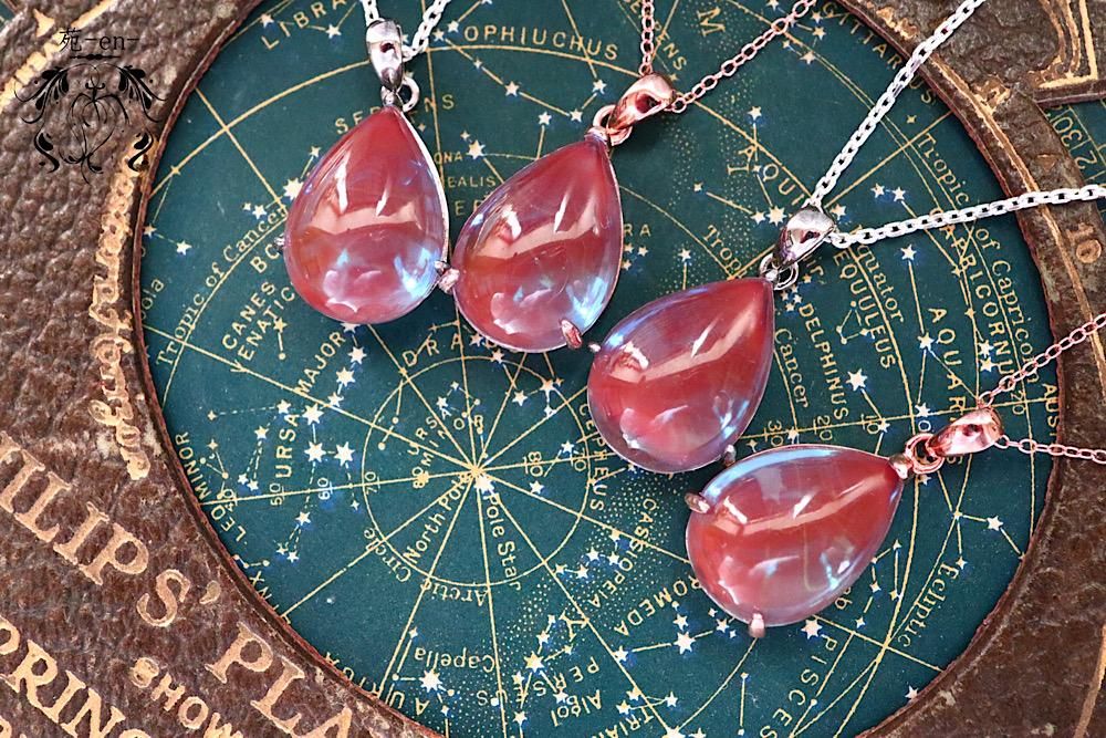 ※サイズ:チェーン…およそ40cm(ピンクゴールドの長さは45cmでしたが今回より変更しております)/サフィレット…ペア型およそ18×13mm