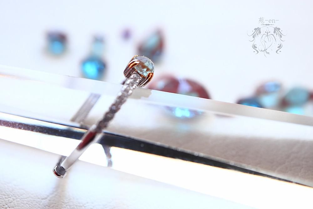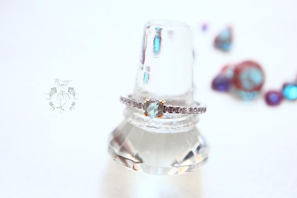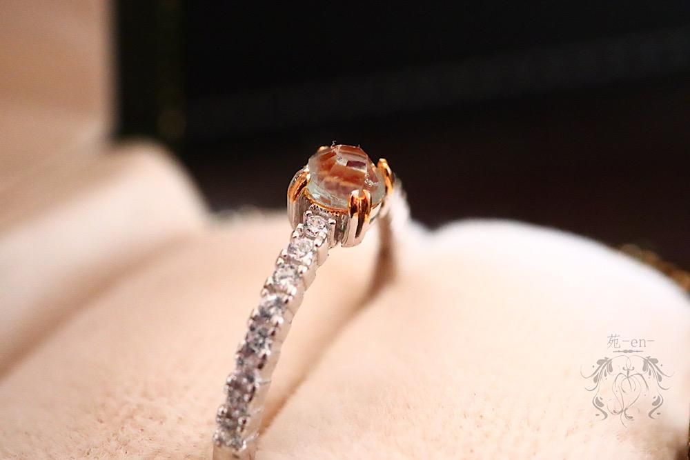 サフィレットを留めている爪だけゴールドカラーのリング。