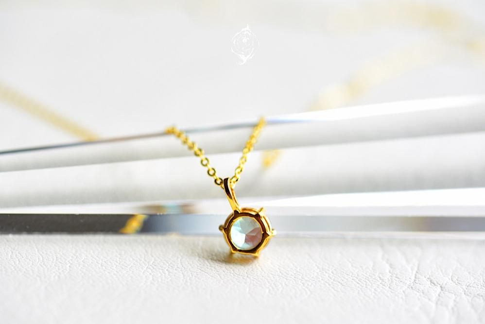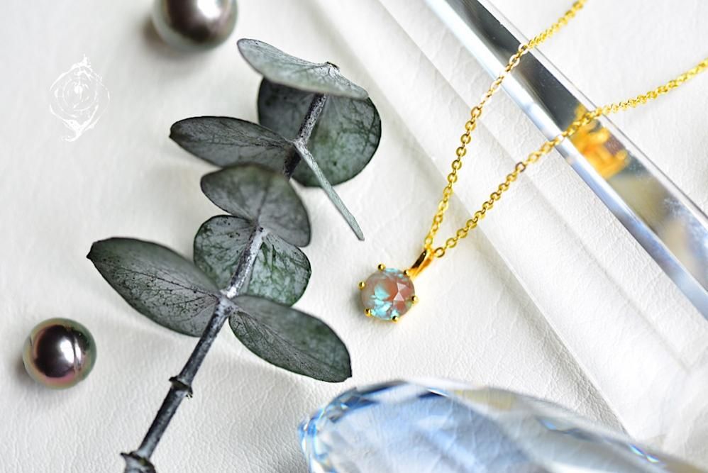 奥深くから輝きを放つサフィレットのワンポイントネックレス。