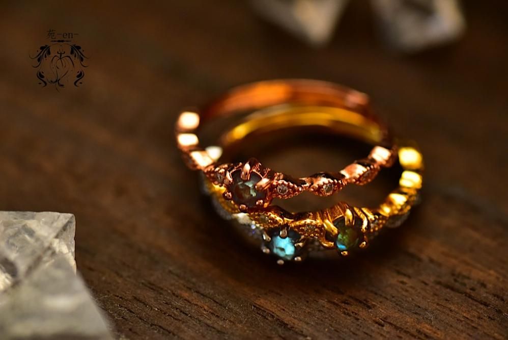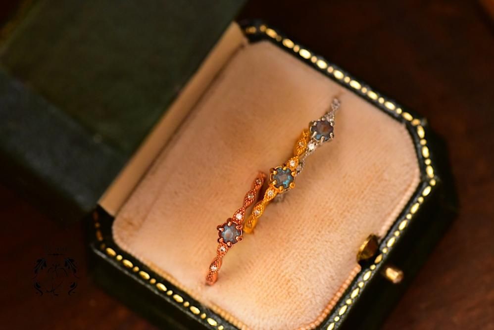 小粒ながら濃い青のサフィレットをリングに留めました。