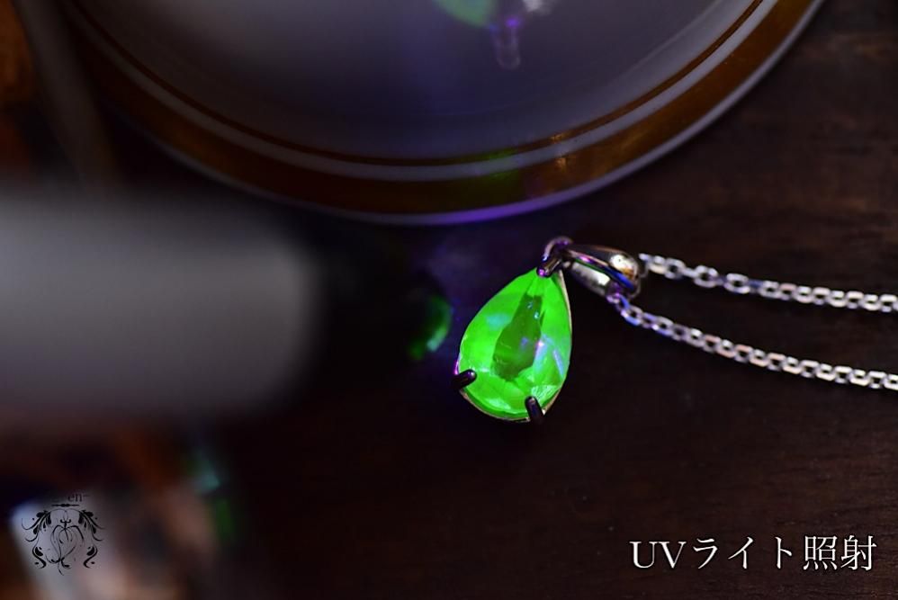 UVライトで蛍光するアンティークサフィレットのネックレス。