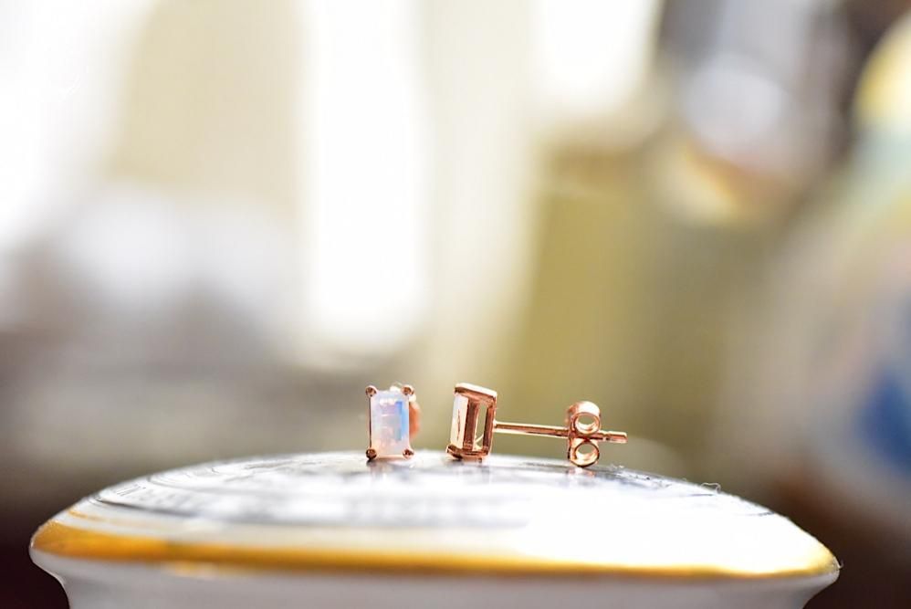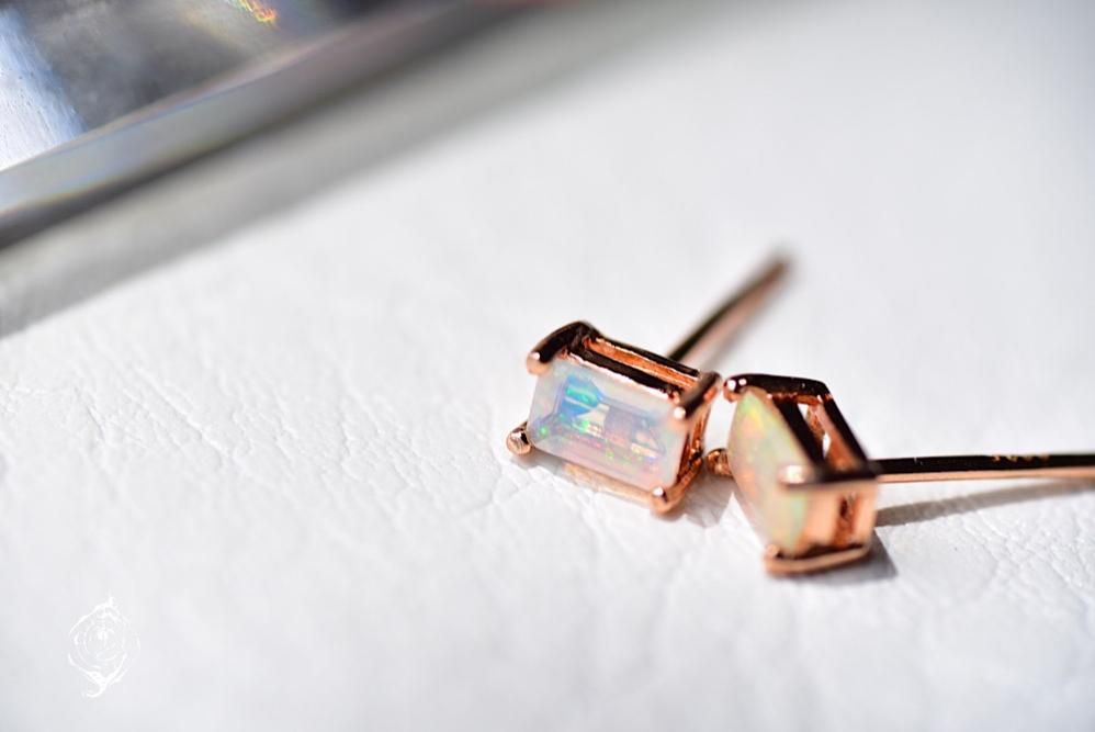 遊色が美しいエチオピアンオパールをワンポイントのピアスにしました。