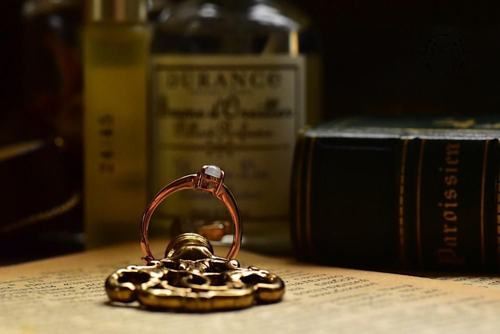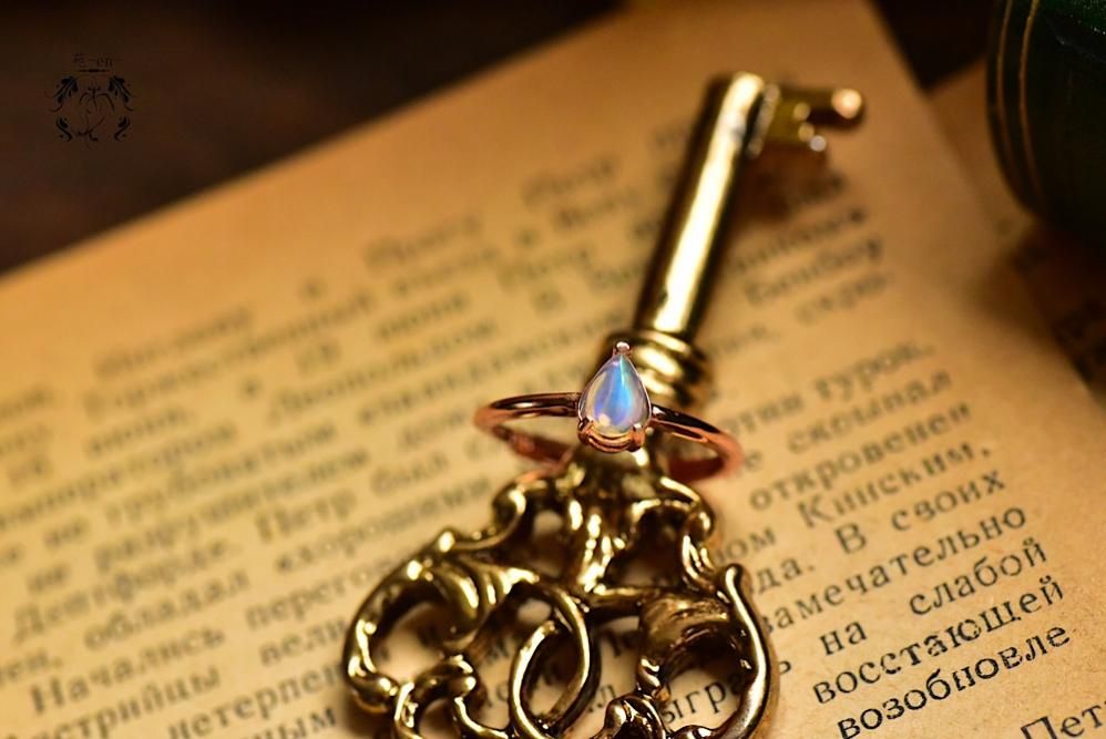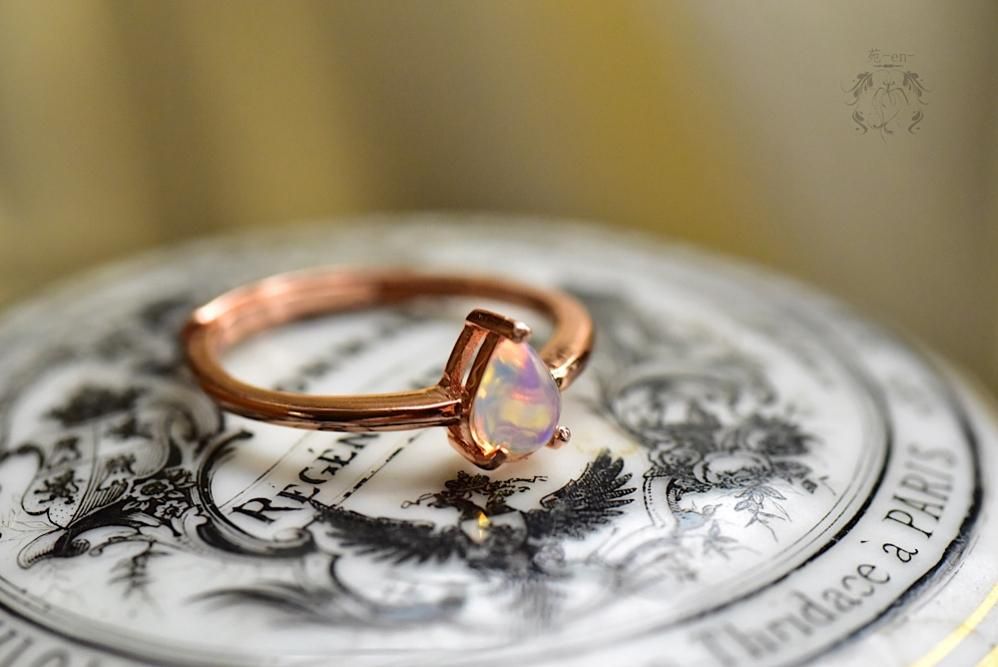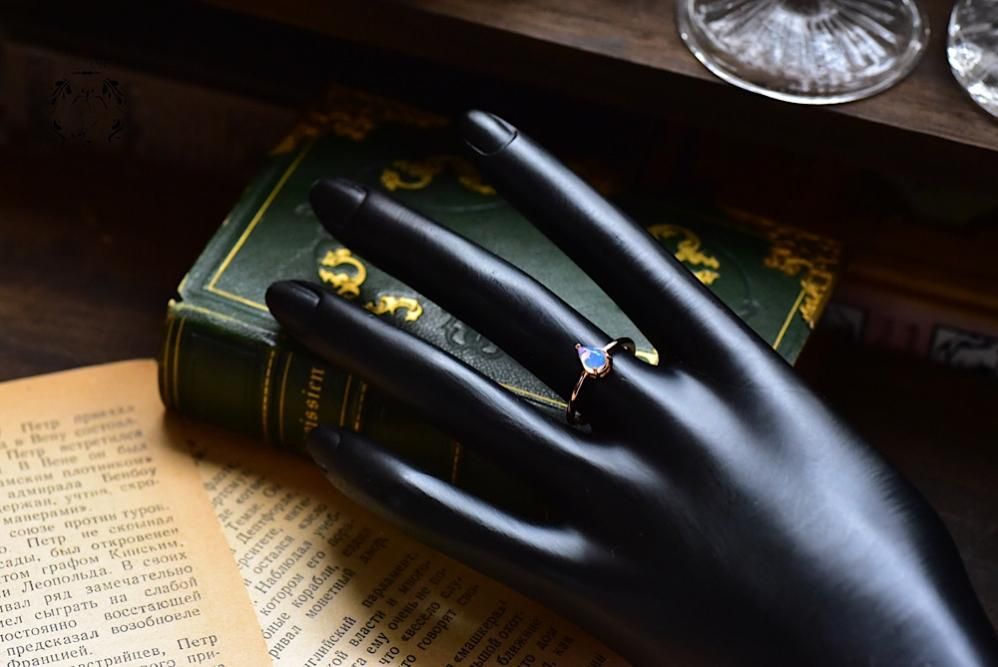 シンプルなリングに小さなドロップ型のエチオピアンオパールを留めました。