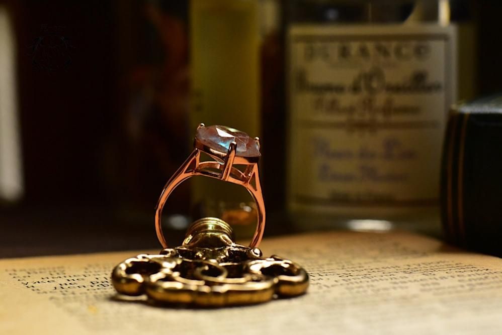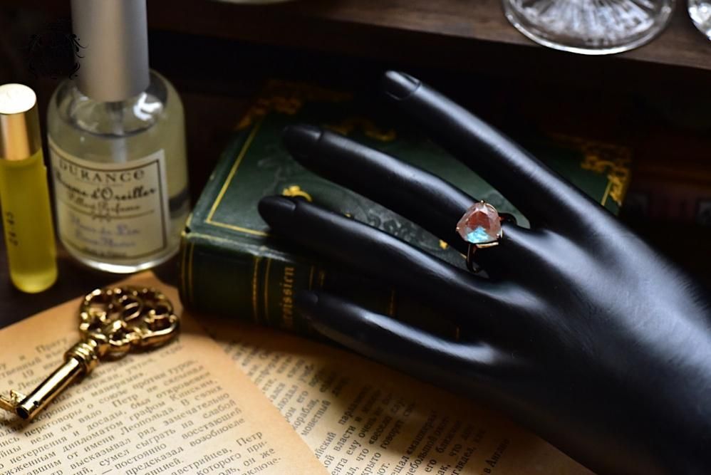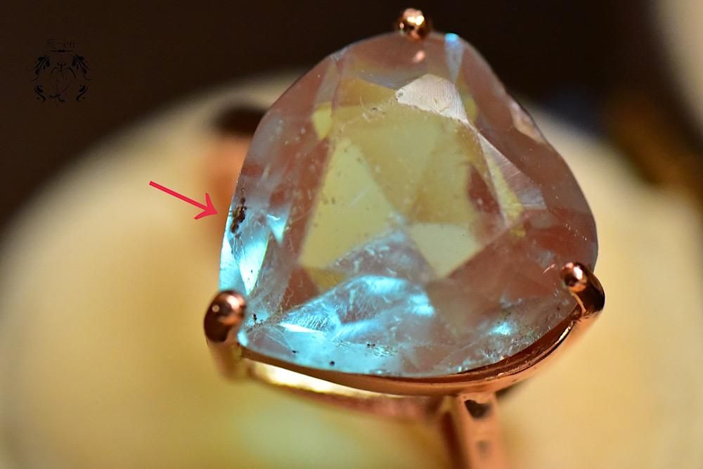 アンティークのハンドカットならではのいびつさがあります。経年によりスレや欠けがあり、カットも甘くなっています。黒い部分がありますので画像にてご確認ください。背景の色に影響されない青が美しいルースです。