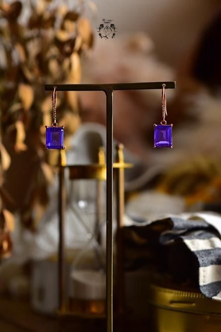 シンプルなピアスに妖艶なパープルのダブレットクォーツを留めました。