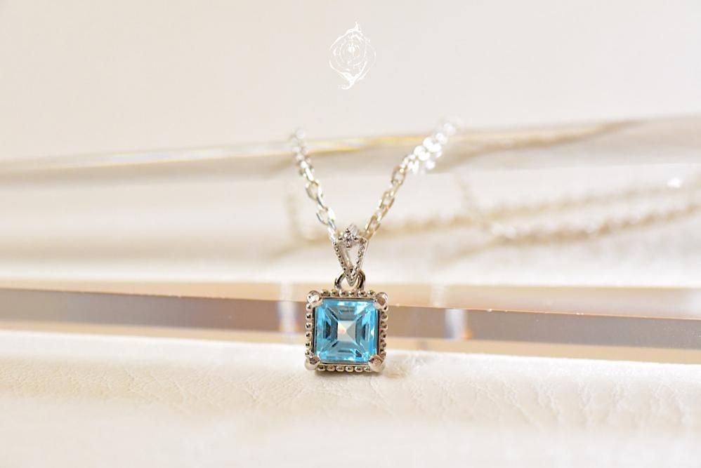 ※サイズ:チェーン…40cm/ブルートパーズ…スクエア型対角およそ6mm