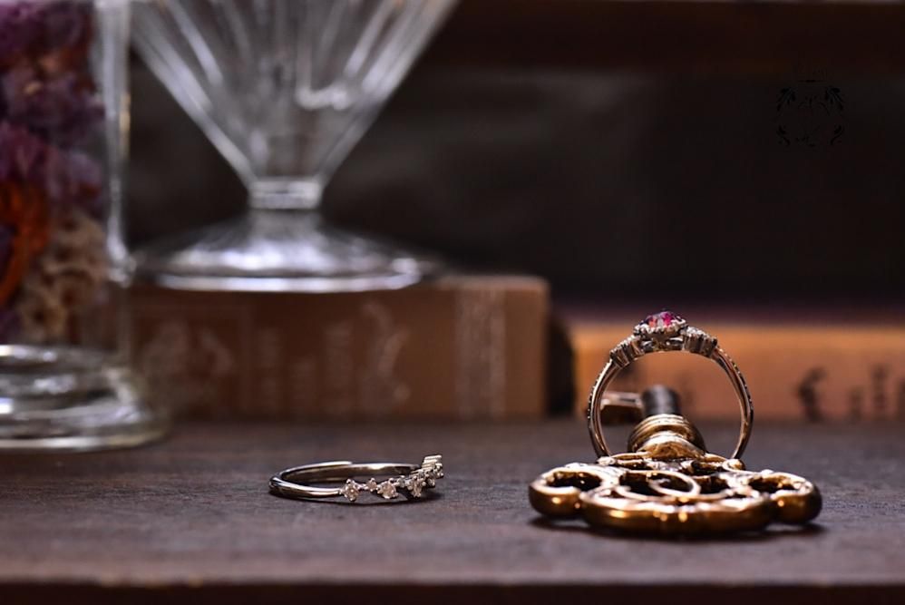 ミル打ちデザインのメインリングはシャムロックを模すようにキュービックジルコニアが3つずつあしらわれたクラシカルなデザイン。セットのサブリングはサイズが交互に配置された華奢なデザインで、重ねてつけてもよし、別につけてもよしな万能リングです。