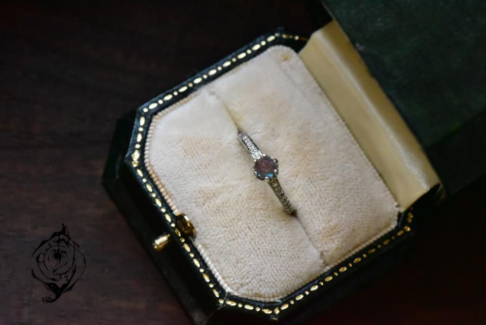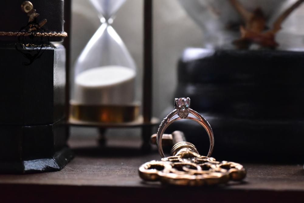 丸みを帯びた爪とアームの華奢さがフェミニンなリングで、側面爪の付け根部分にはハートが隠れています。