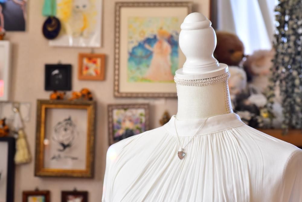 クラウン(表面部分)にカットがなく、パビリオン部分にカットが施されたハート型のルースを、あえて裏表逆に留めたネックレス。