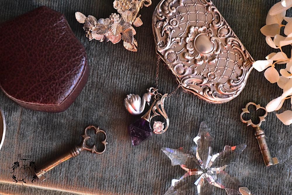 スワンと羽根モチーフのチャームをつけました。