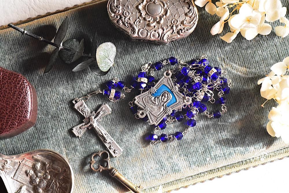 真夜中の空からこぼれ落ちたような深い青のヴィンテージガラスを使いました。