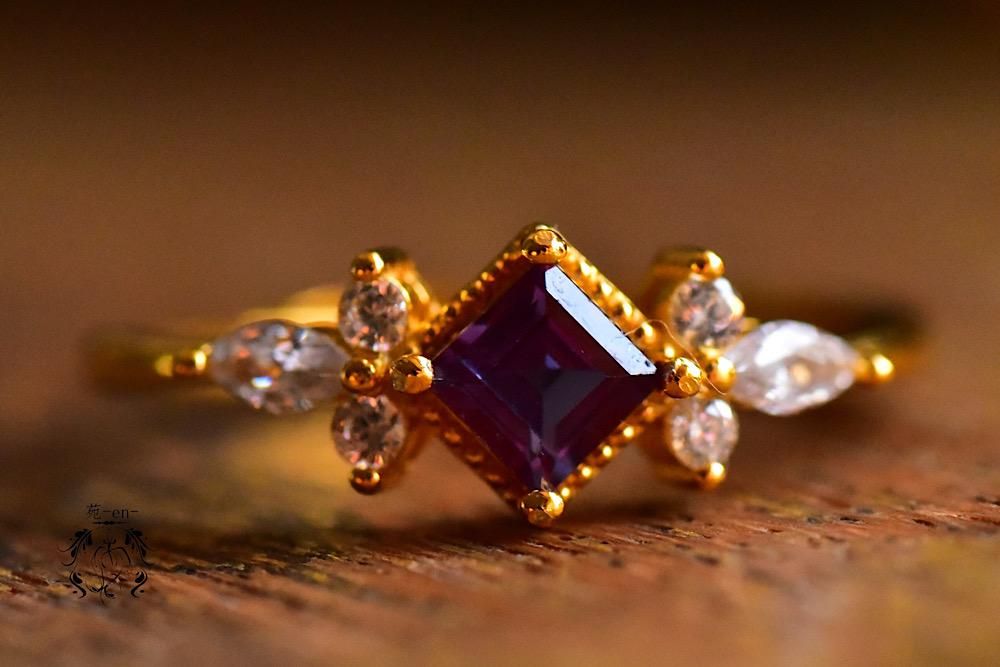 サイズ:フリー/合成アレキサンドライト…スクエア型対角およそ5mm