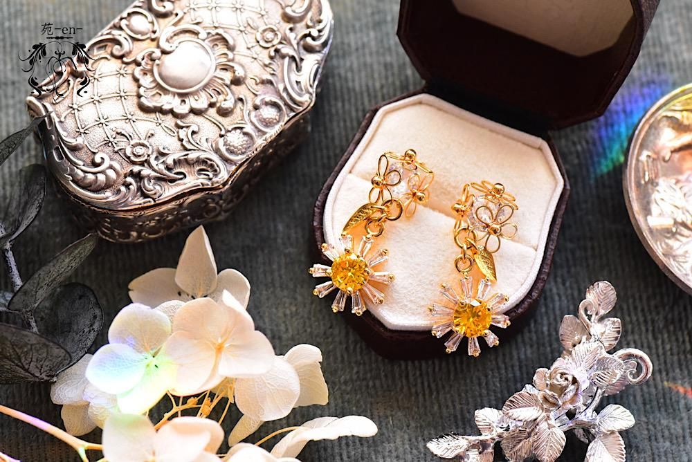 白と黄色のキュービックジルコニアが素朴な可憐さを引き立てます。