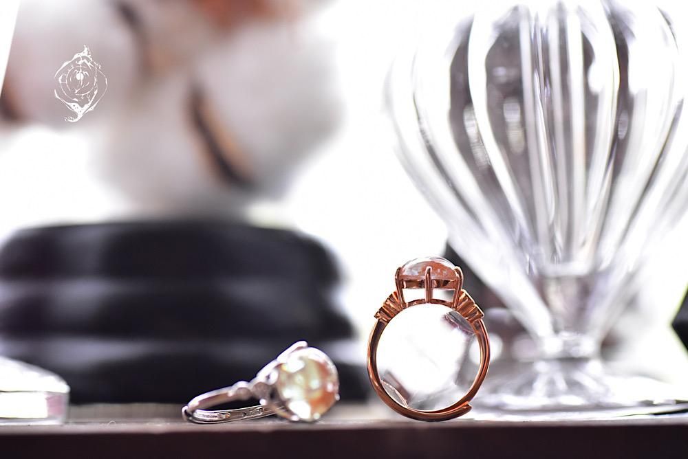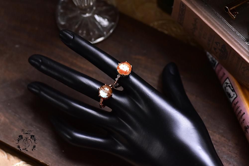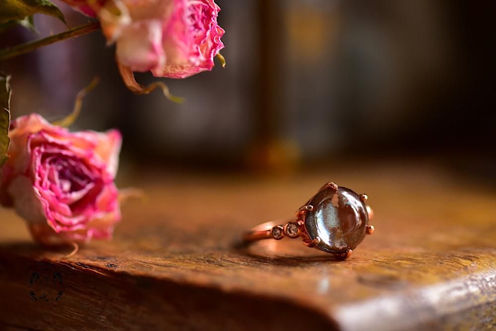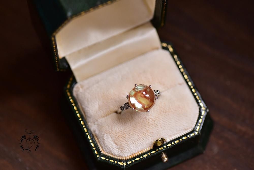 ピンクゴールドに使用したルースはバックフォイルに剥がれがあります。
