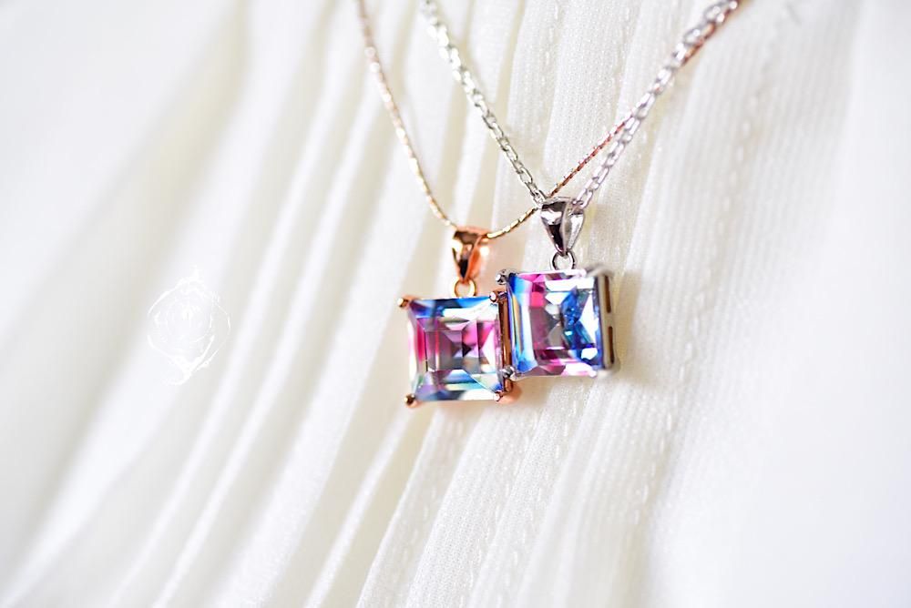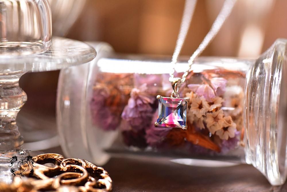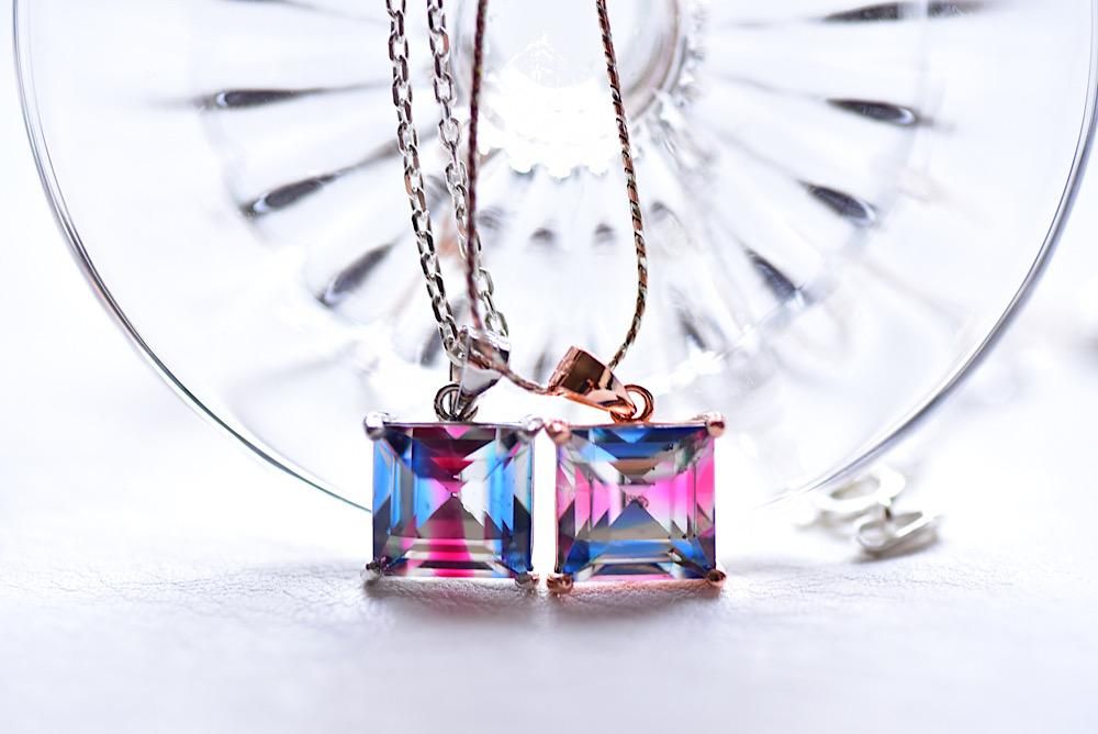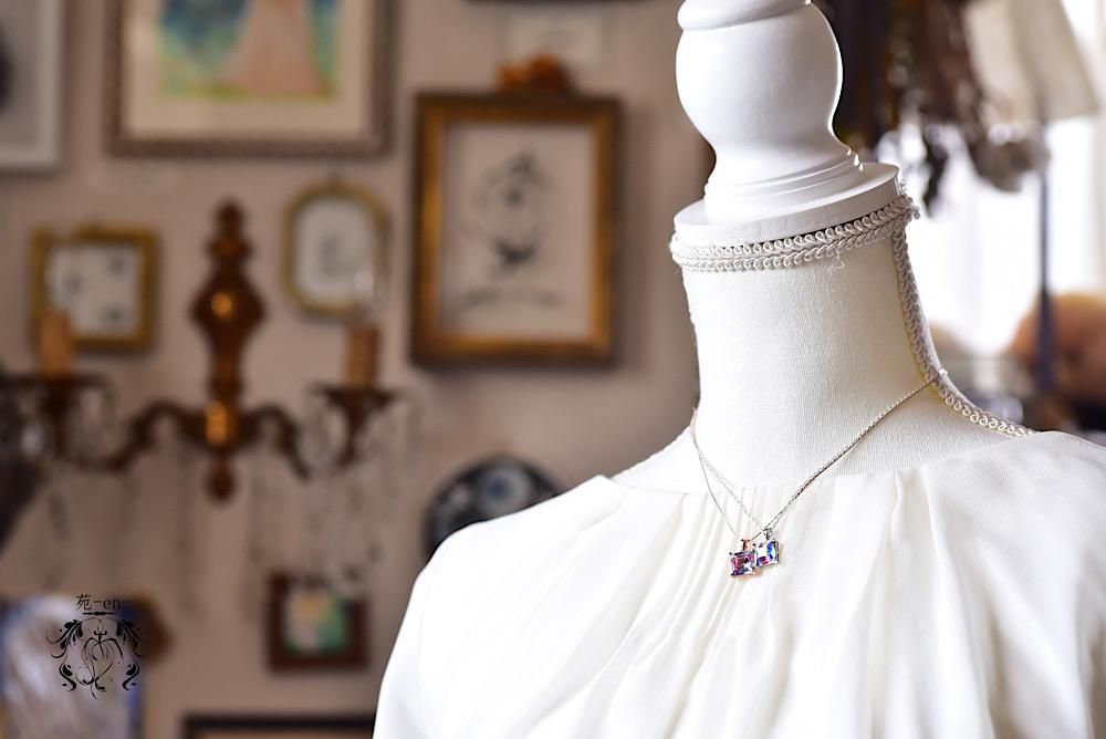大粒スクエア×アイリスガラス 【ネックレス】
