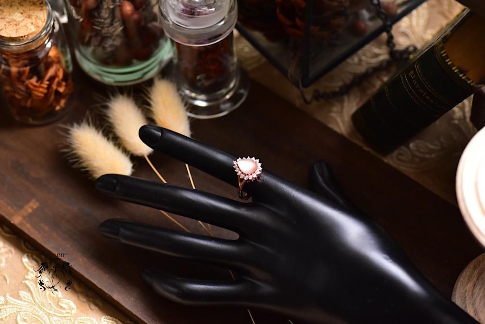 ピンクゴールドが淡い青を押し上げ、優しい印象に一役買っています。