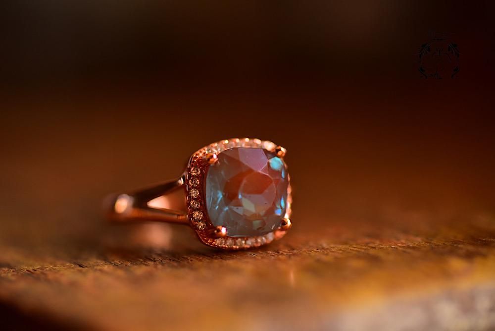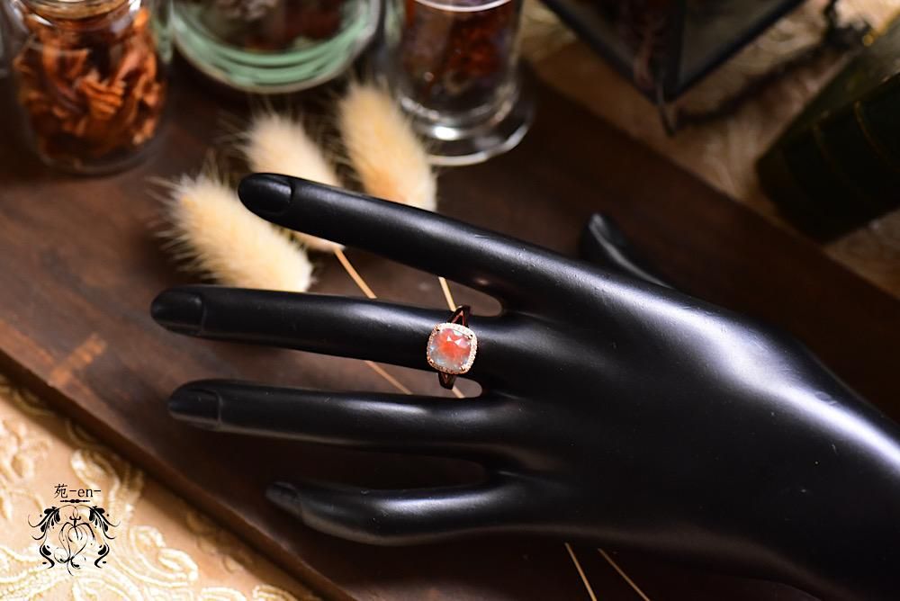 およそ対角9mmと大粒サイズのアンティークサフィレットをキュービックジルコニアで囲われているリングに留めました。