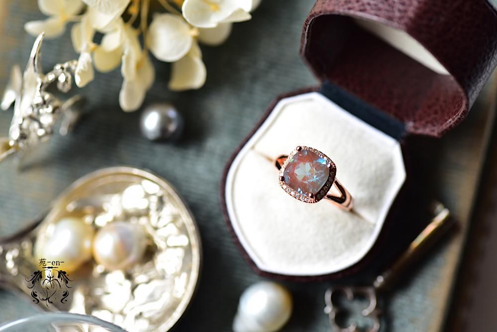 リングの石枠はオープンバックですが、肌のお色に影響されることなくお楽しみいただけます。