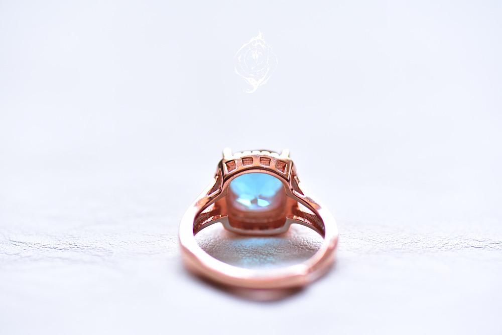 同様のカラーリングのサフィレットをシルバーカラーのリングで販売中ですが、今回はピンクゴールドをあつらえました。シルバーの方で使用したルースよりも少々青が鮮やかです。