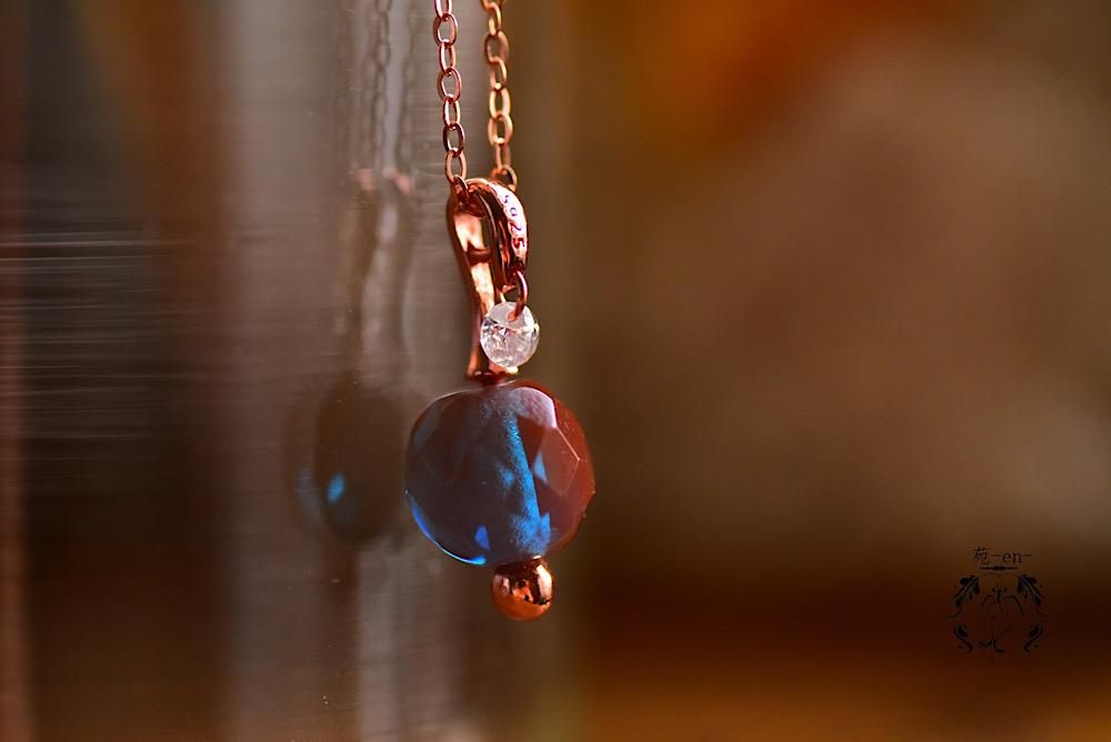 これぞサフィレットという見事な深い青は、濃いモーブカラーと合わさっています。光にかざした時に美しい青が本領発揮するので、ぜひ様々な角度からお楽しみください♪
