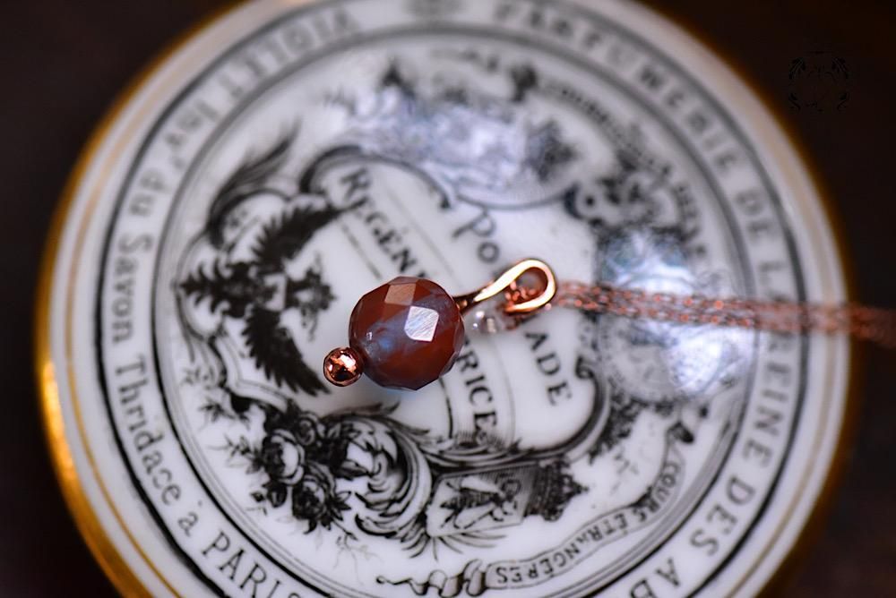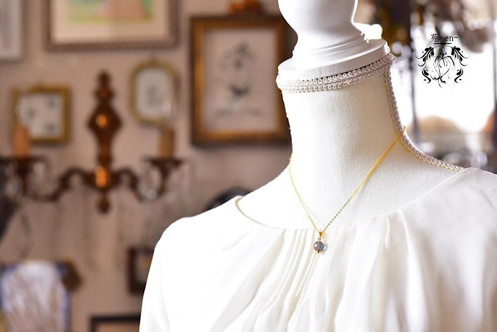ビーズの下にある丸いパーツはネジになっていて、緩めると解体できる仕様のネックレスです。