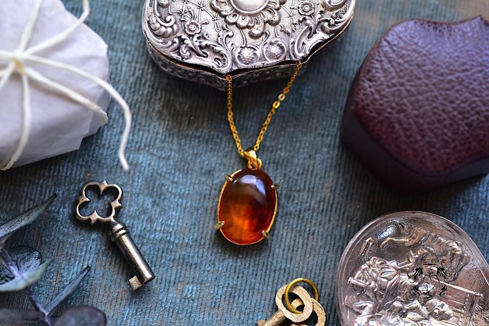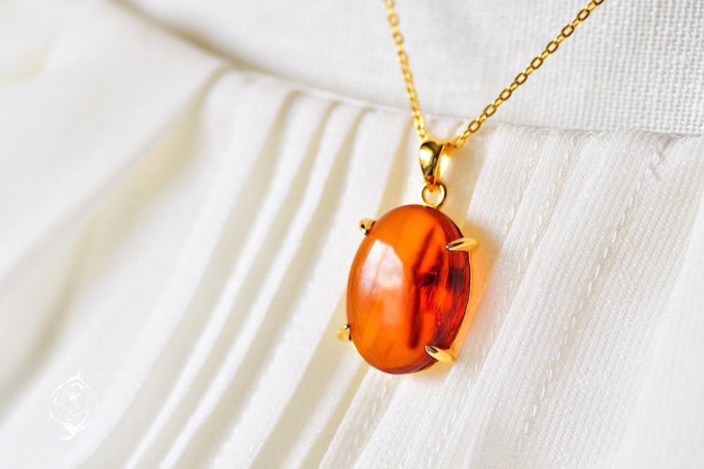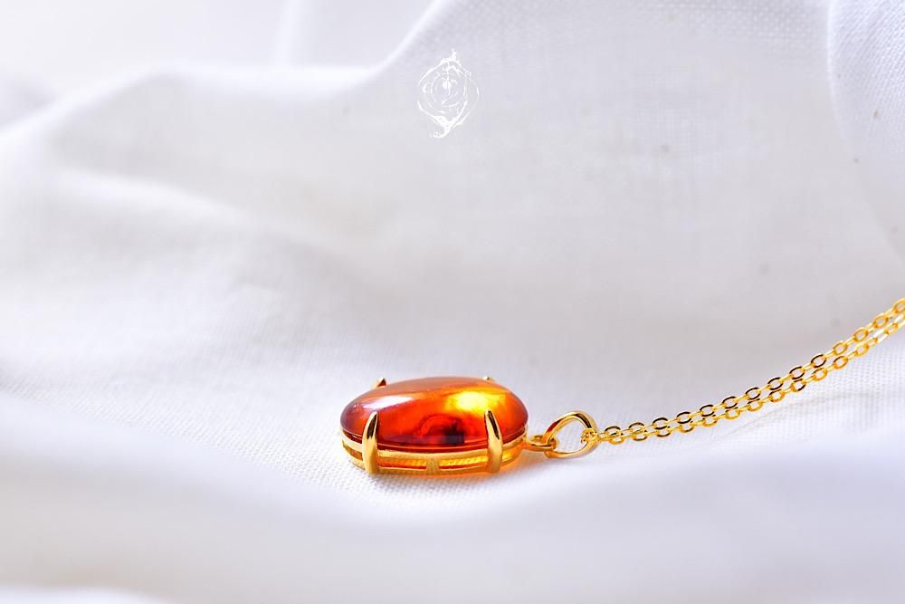 ※サイズ:チェーン…およそ40cm/琥珀…オーバルカボションおよそ19.5×13mm