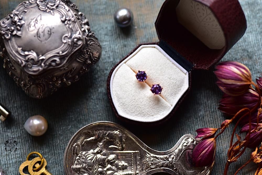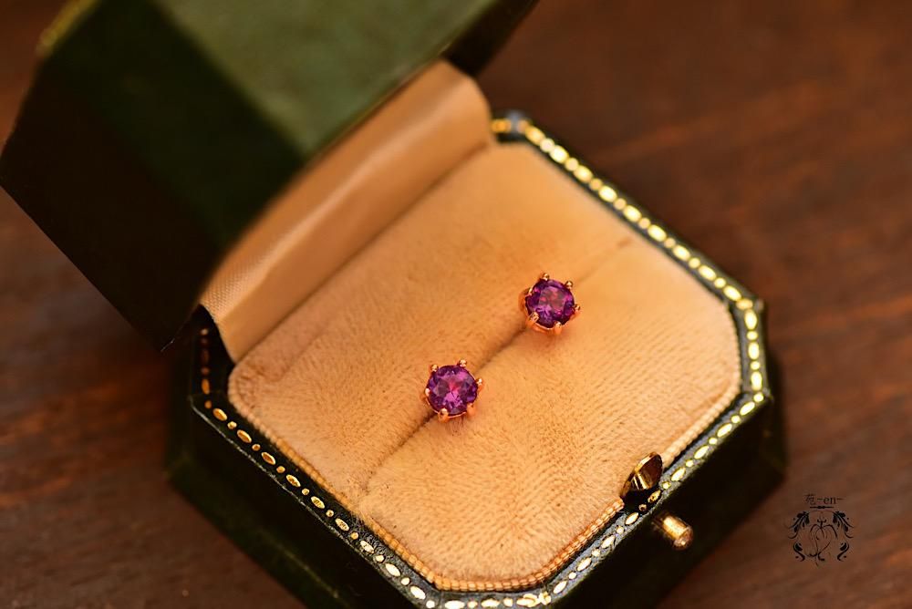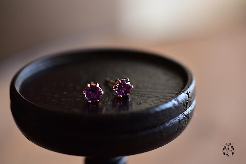 合成アレキサンドライトを使い勝手の良いワンポイントのピアスにしました♪