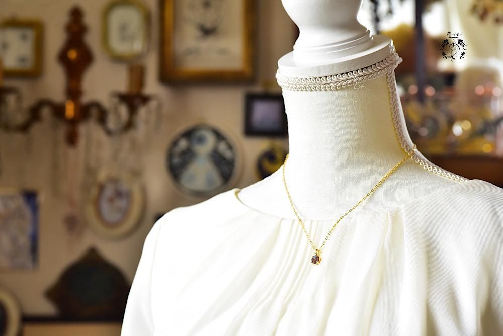どんなお召し物やシチュエーションにも合わせられるワンポイントネックレスにしました。