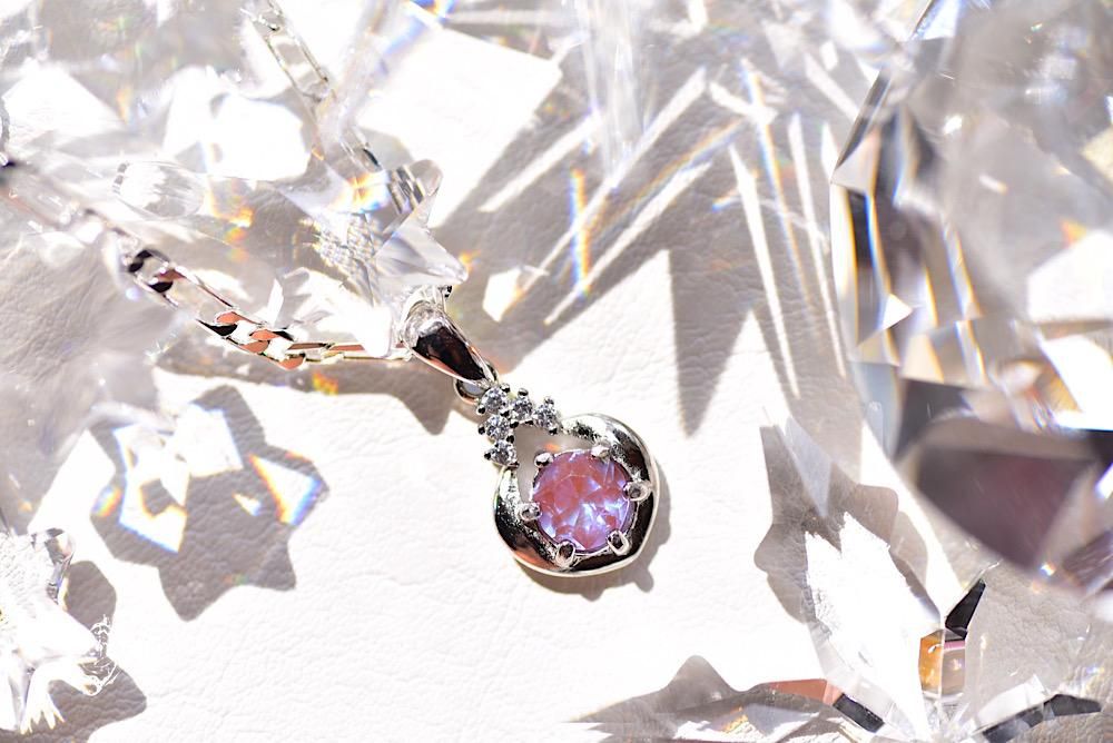 更に白熱灯ライトでピンクパープルにカラーチェンジするルースを使用しました。