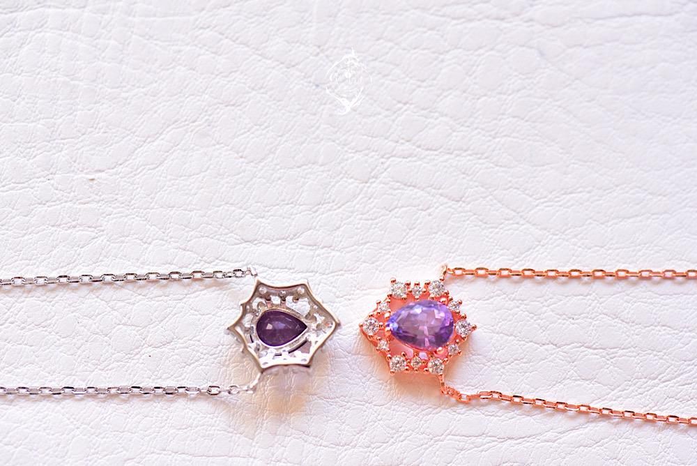 白熱灯ライトを照射すると赤みを帯びた濃い鮮やかなパープルにチェンジします。