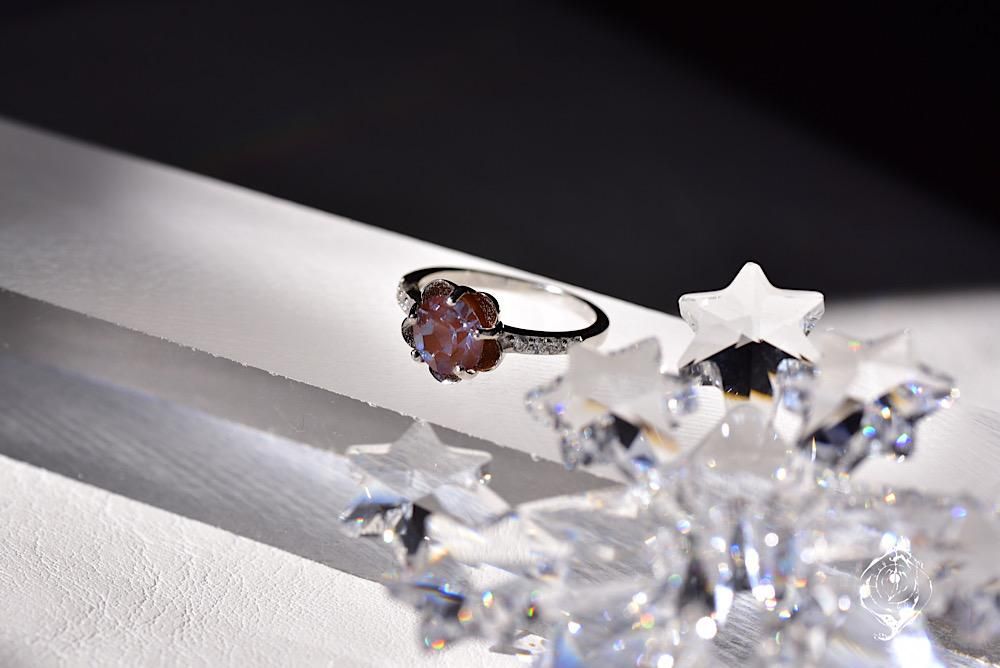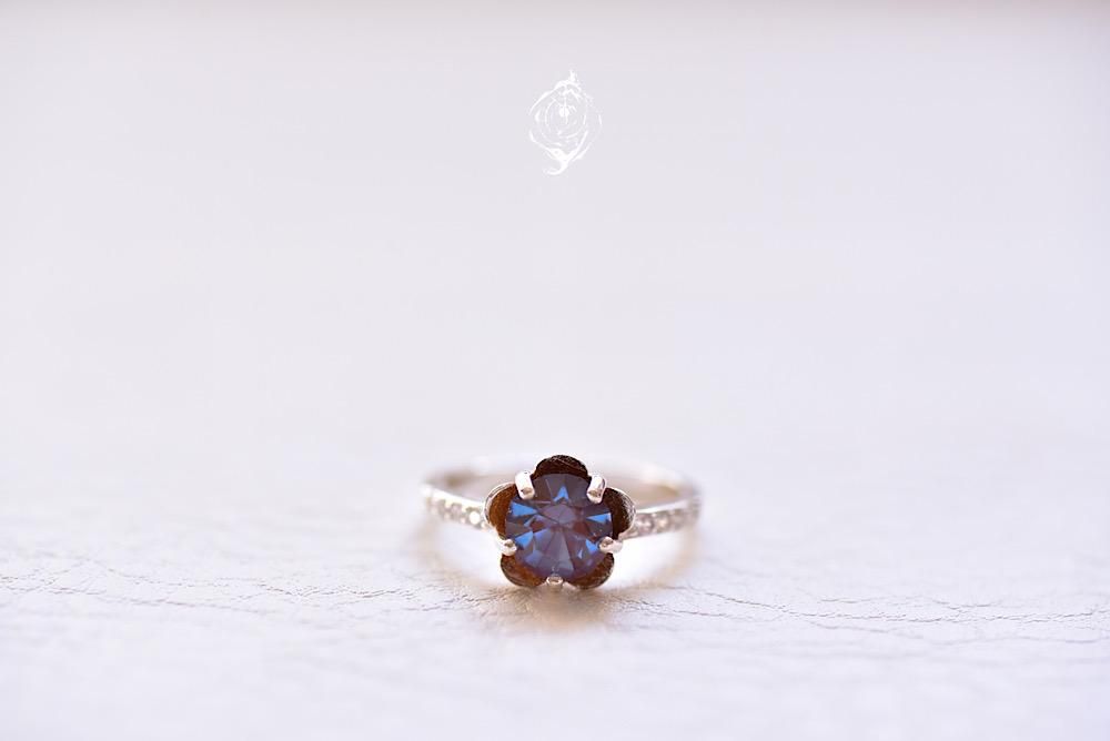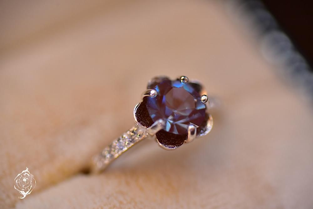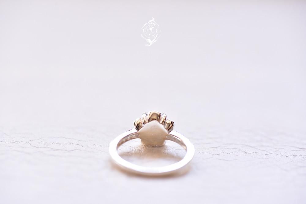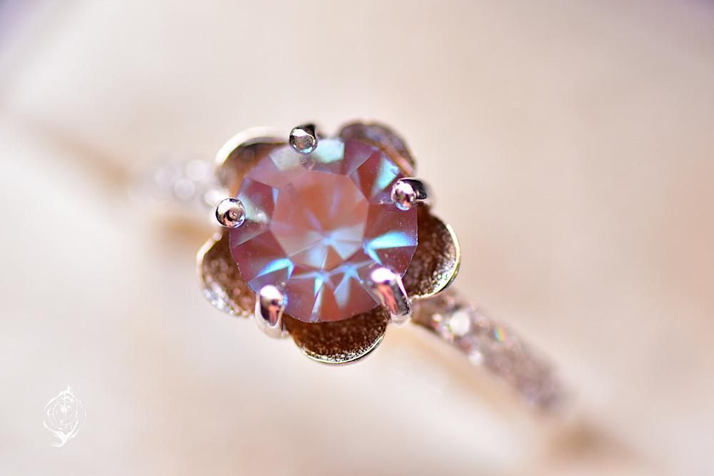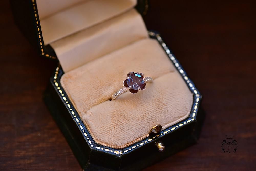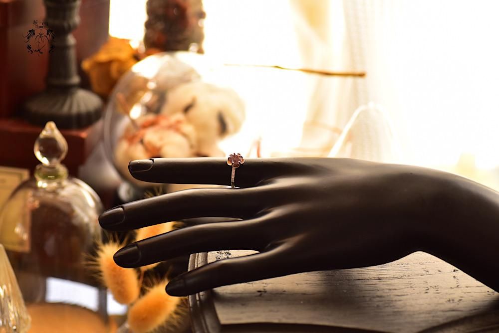 リング台はお花の形の石座付きで、アンティークジュエリーのバターカップのように石留しました。