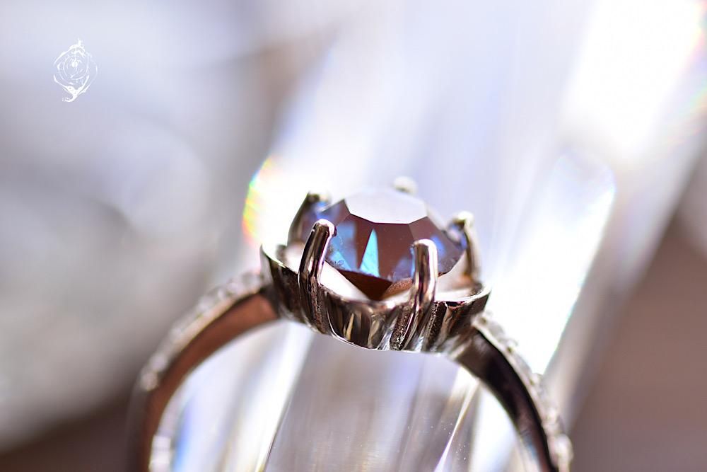 カットはシンプルなものですが、バックフォイルのおかげで青い閃光が揺らめく素晴らしいルースです。
