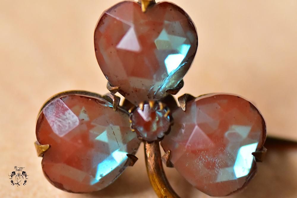 人気の三つ葉のクローバー・シャムロックのモチーフで、サフィレット部分はオリジナルのまま受け継がれていると思われます。