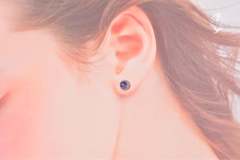 コロンとまるいタンザナイトのカボションをSV925のピアスにしました。