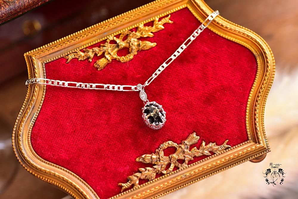 カラーレス×ブラックの配色でバックフォイルがあるオーバルのルースで制作しています。