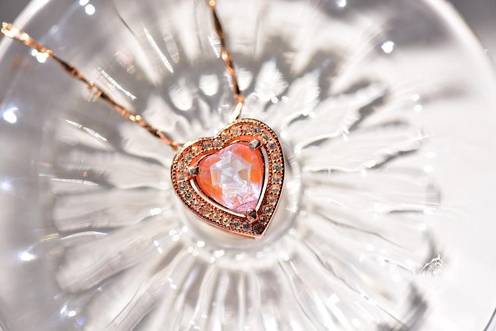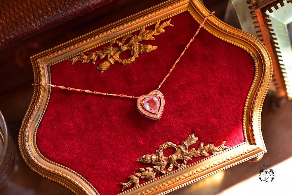 ハートの形が縦長なので石座の枠が少し見えている状態です。ご承知の上でお求めください。