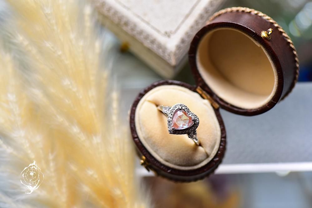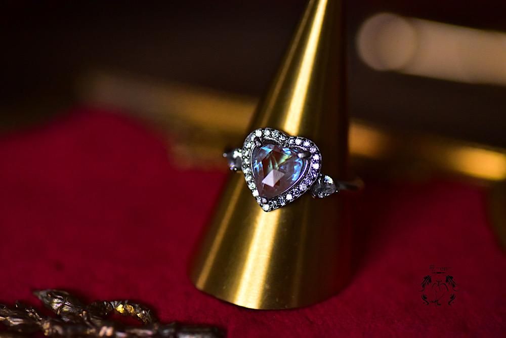 三角形が並ぶローズカットを施された珍しいハート型のサフィリーン。