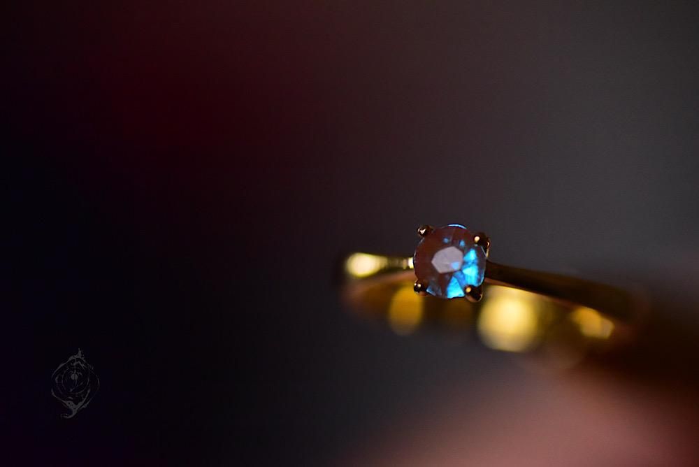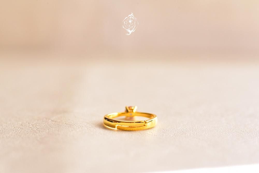 石座に向かってほっそりとしていくアームに支えられた、婚約指輪に使われるようなシンプルなリング。