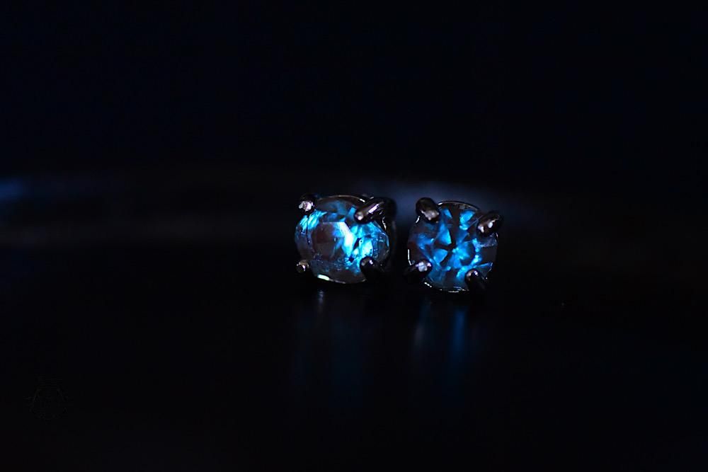 正面から光をうけて放つ青ははっきりとした濃さで、3〜4mmという小粒さを感じさせない存在感があります。