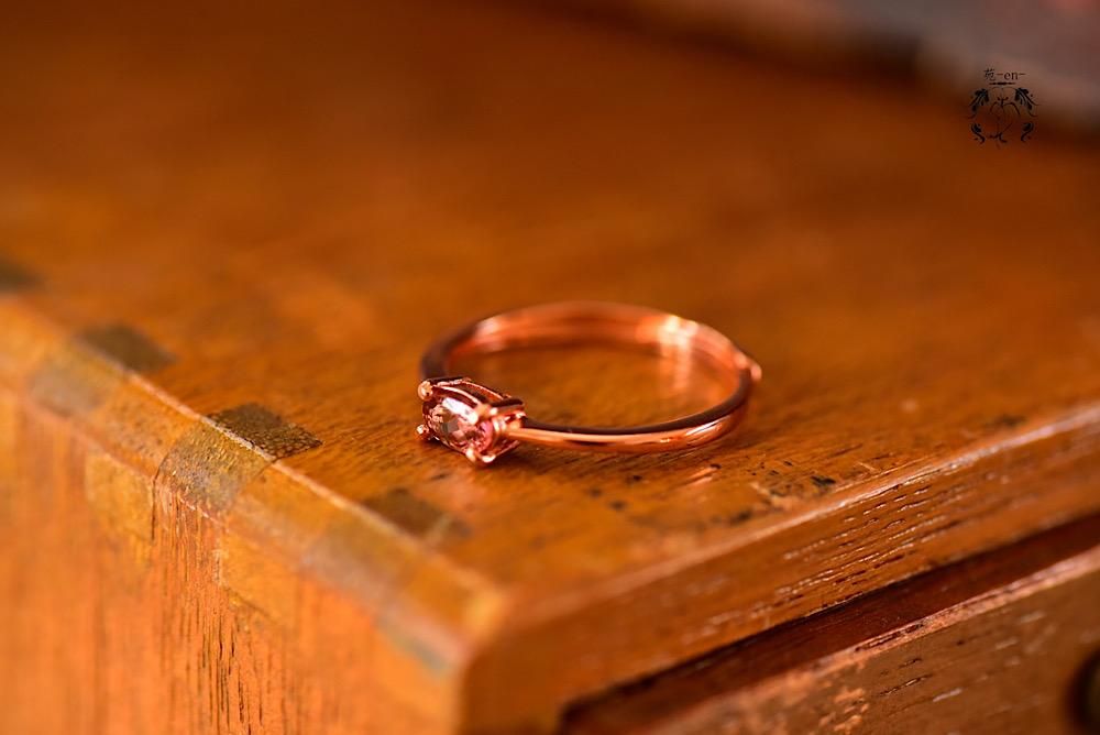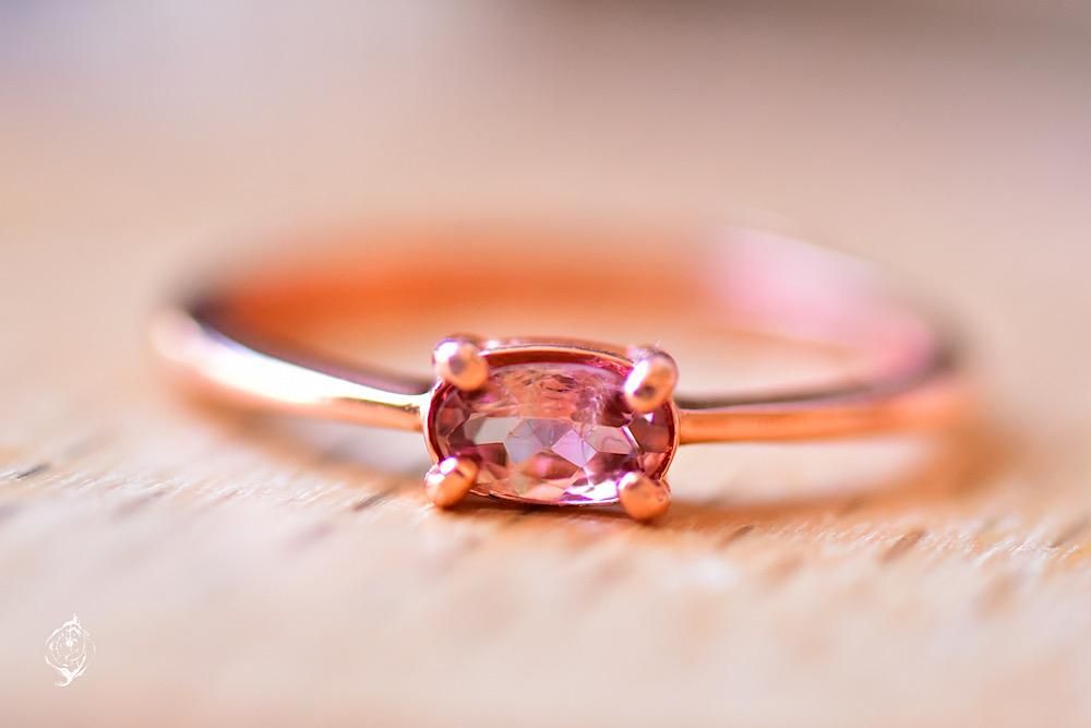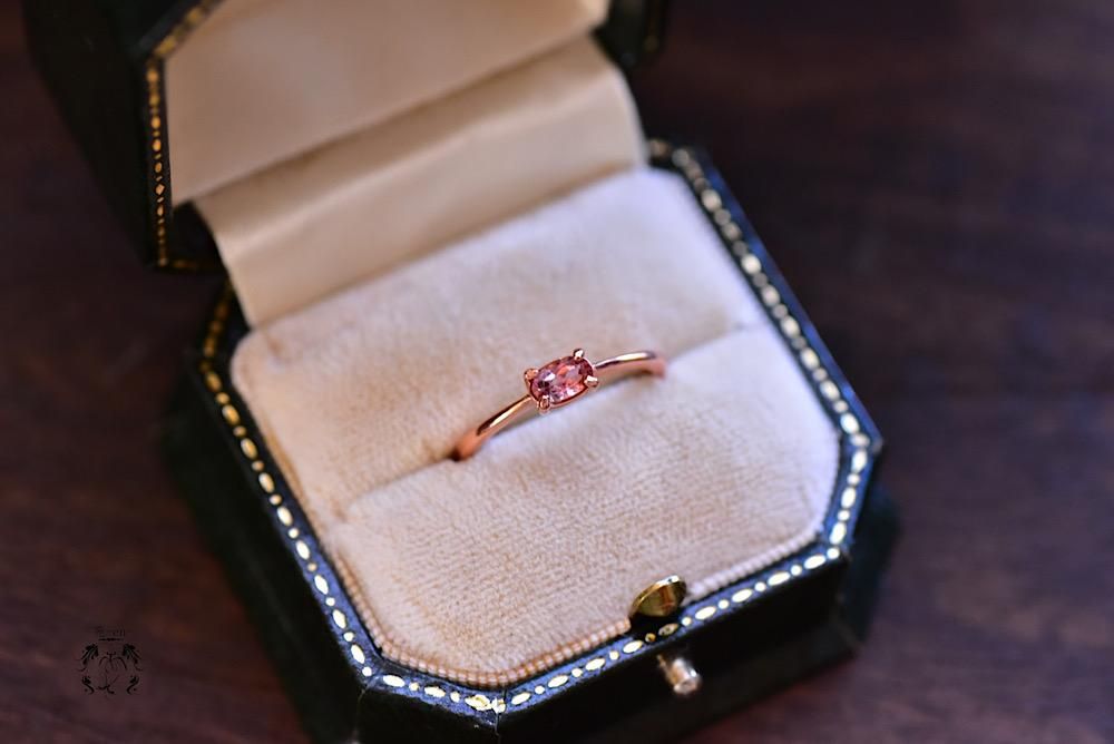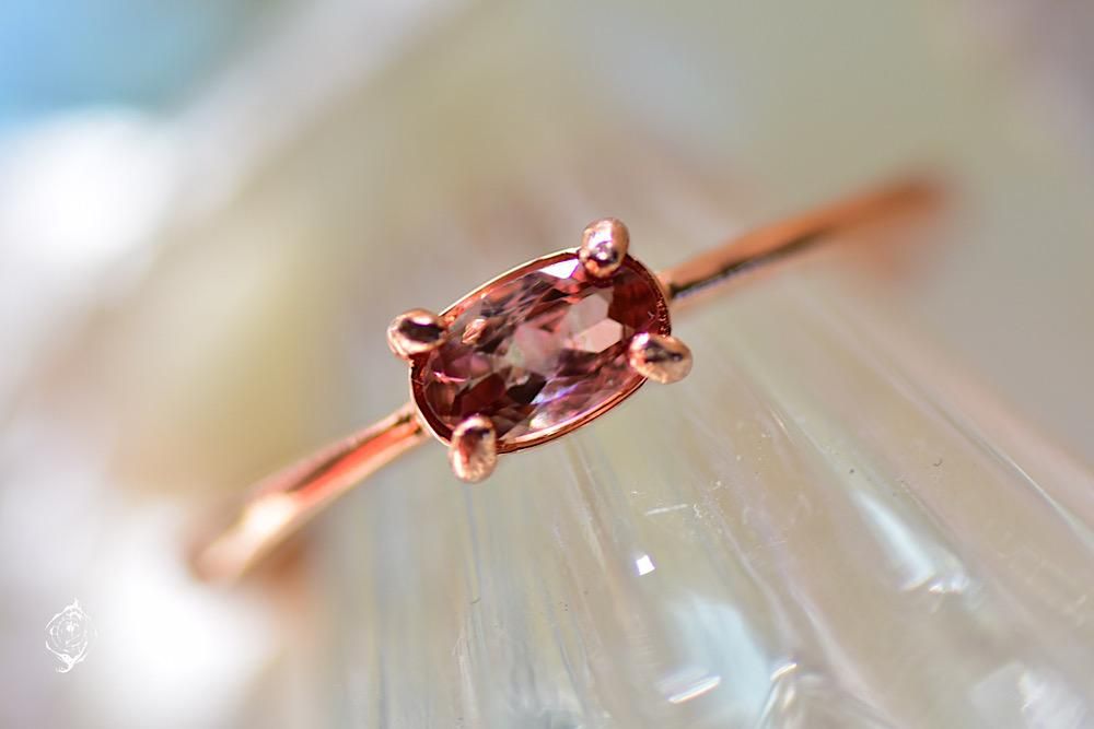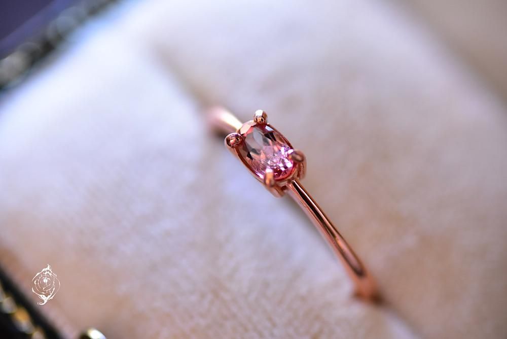 ピンクのバイカラートルマリンのリング。