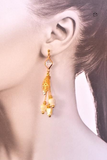シェルパーツの鈴蘭が3粒揺らめく耳飾り。