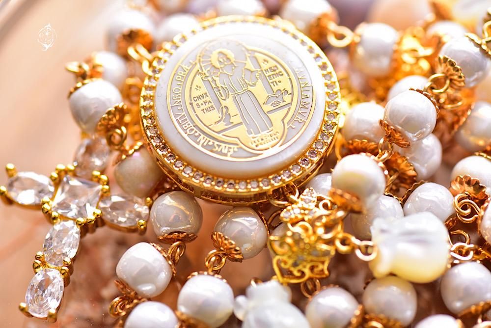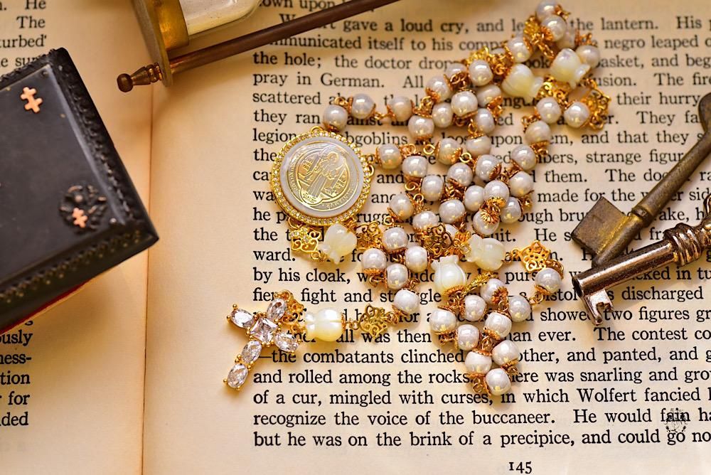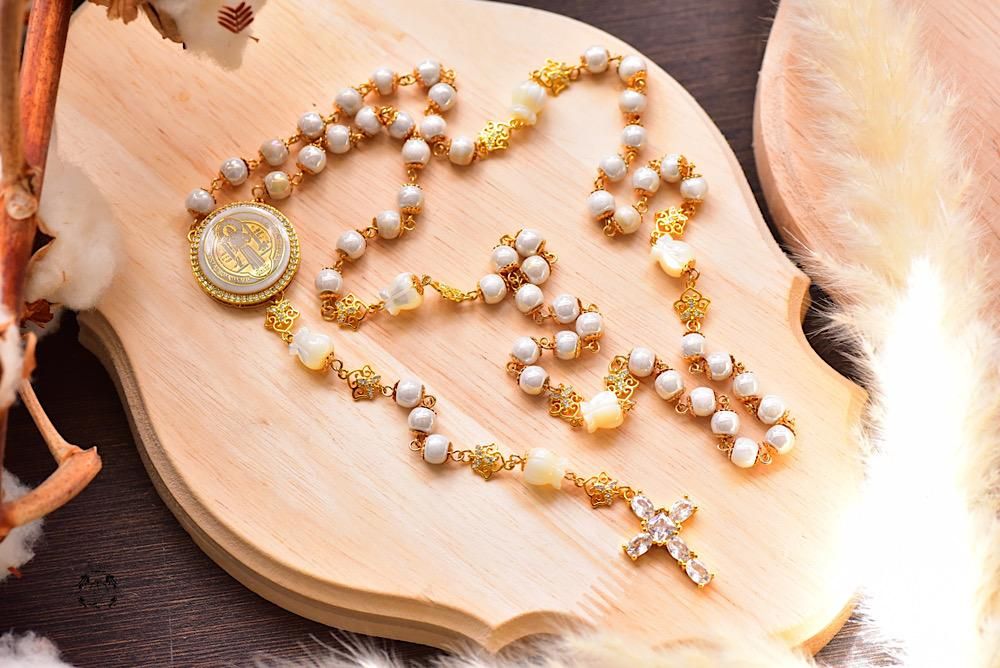 シェルパーツの鈴蘭が主の祈りに配置されたロザリオ。