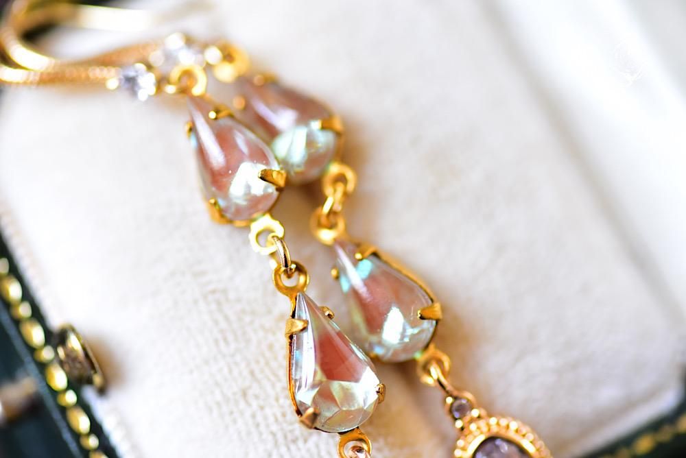 贅沢に4つも使用したサフィリーンは、まるで森の中にひっそりと存在する湖の澄んだ水のような白藍の色を持ち合わせています。1950〜60年代のドイツで生産されたルースで、柔らかい雰囲気の白藍カラーが目を引きつけます。バックフォイルの状態も良く、剥がれはほとんどありません。