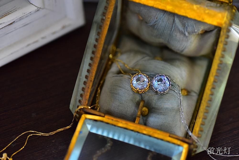 光の当たり方で色を変えるヴィンテージスワロフスキーを使用したワンポイントネックレス。