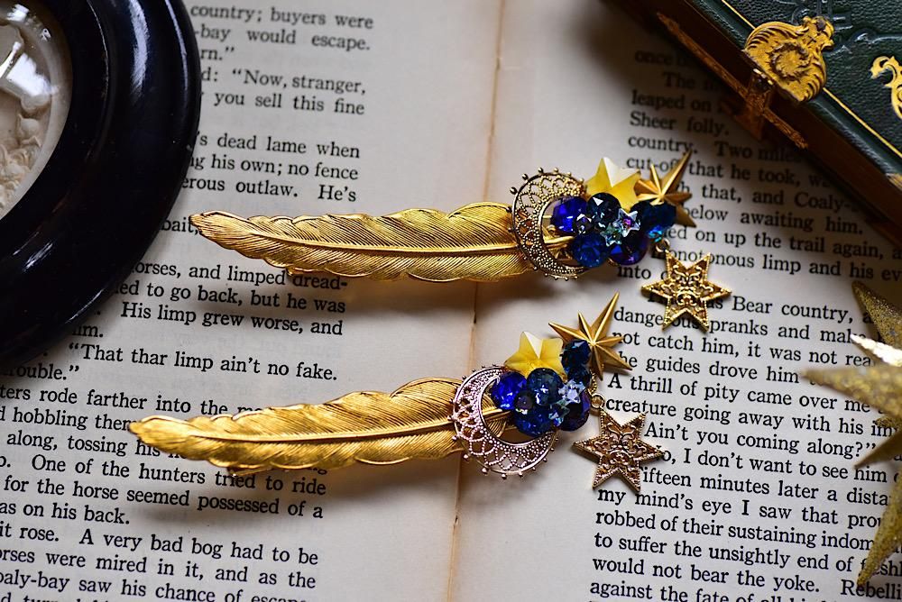 大きな羽根と埋め込まれた星のパーツは真鍮製なので、経年により使い込まれてゆく様子をお楽しみいただけます。