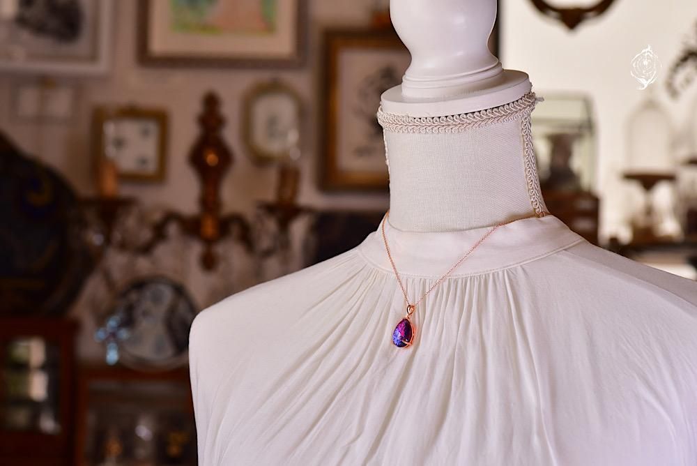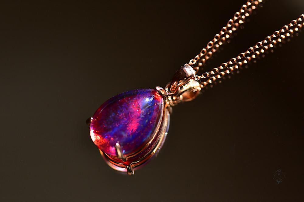 ピンクゴールドと相性ぴったりの大粒のpear型ドラゴンズブレスは、現行品で前面にシラーが確認できます。ルースの縁には小さくカットが施されています。