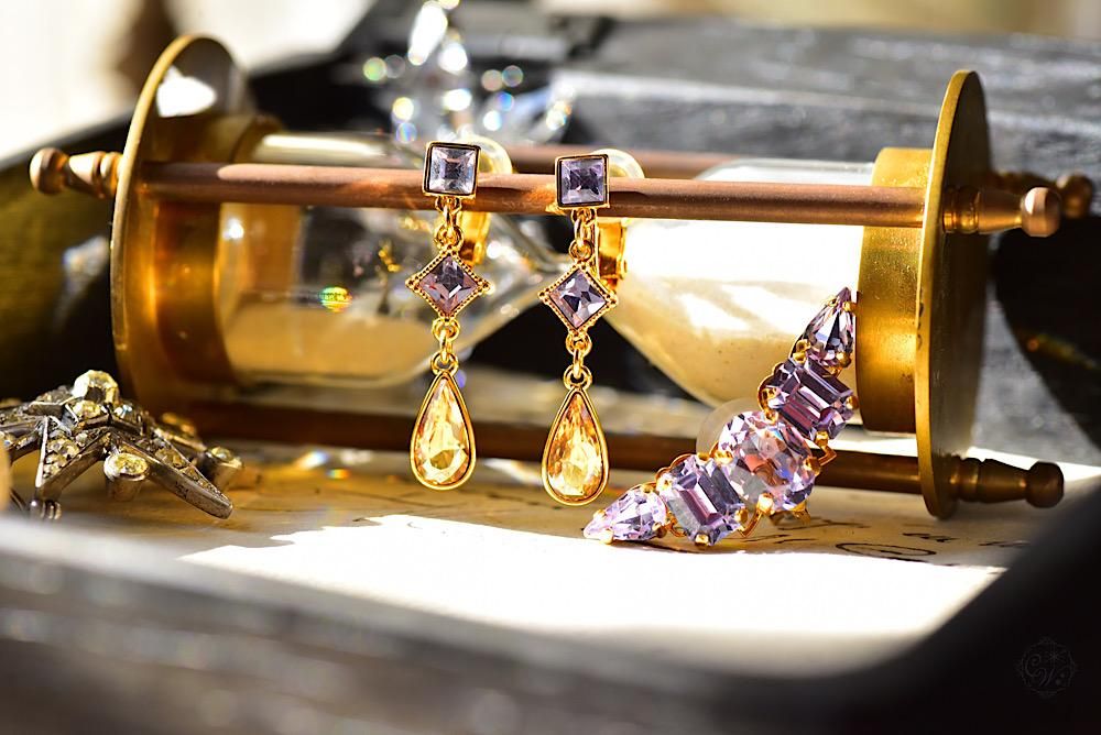 光源によって色が変わるCarino worksおなじみのアレキサンドライトスワロフスキー。