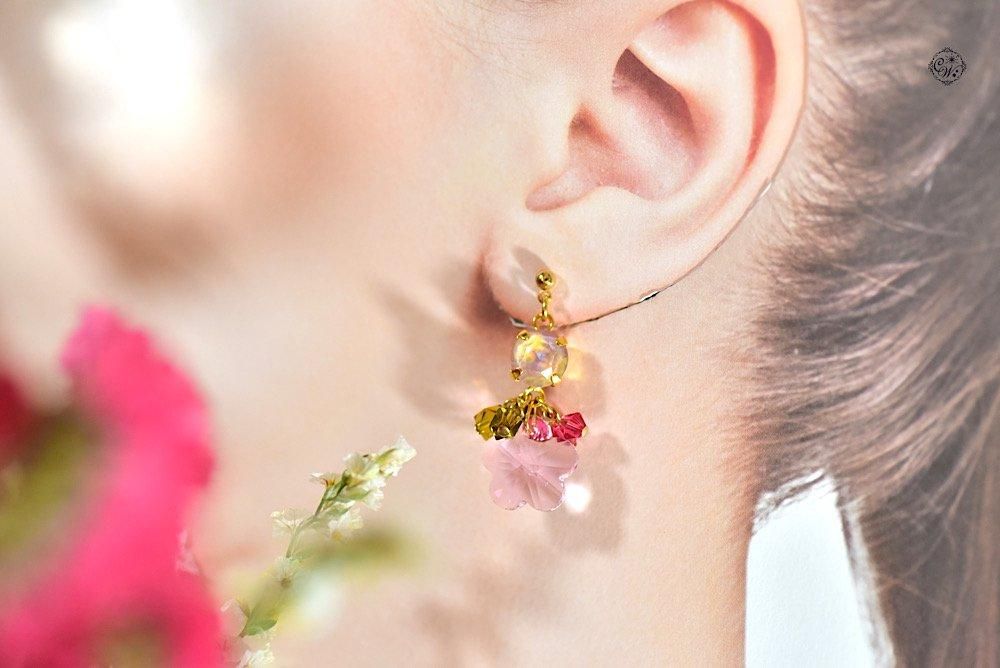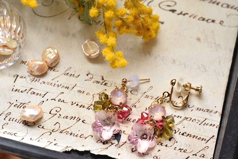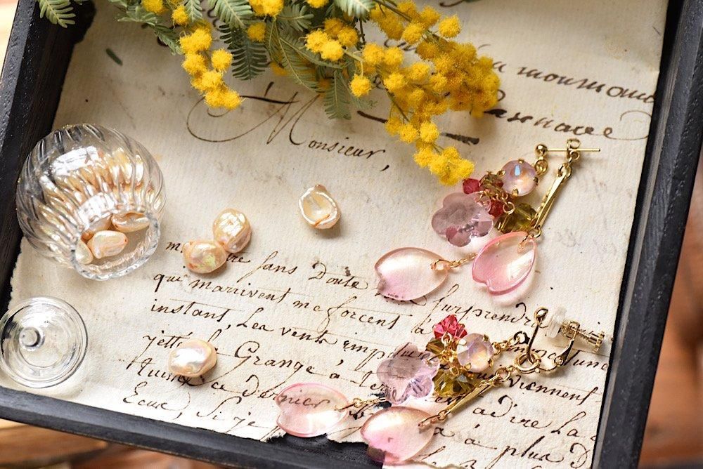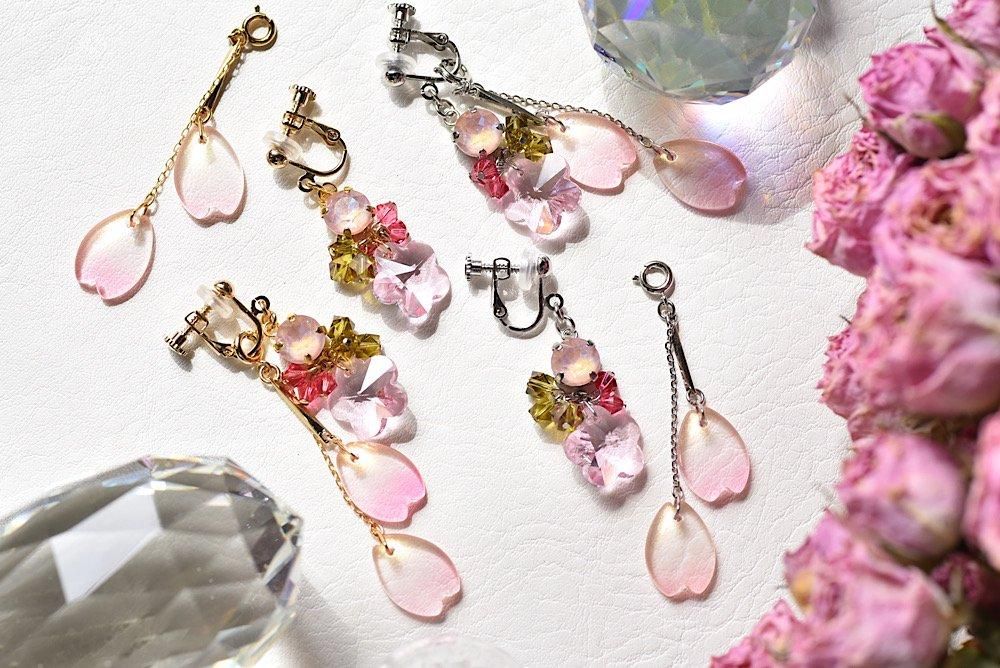 これからの季節にぴったりな桜モチーフの耳飾り。