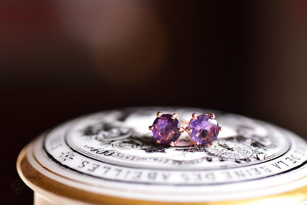 芳醇なパープルのフローライトを使用したワンポイントピアス。