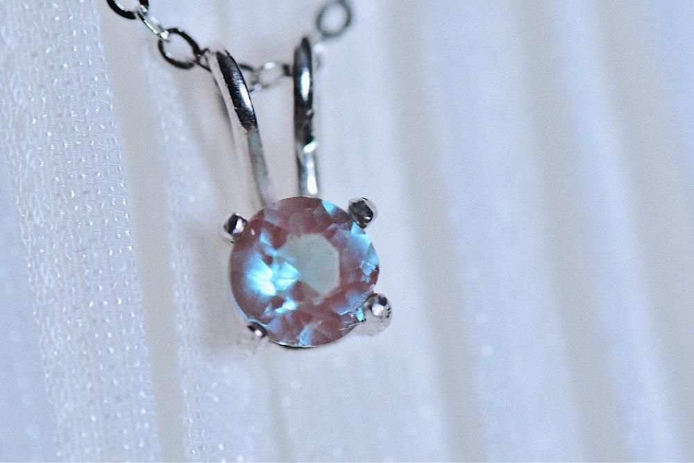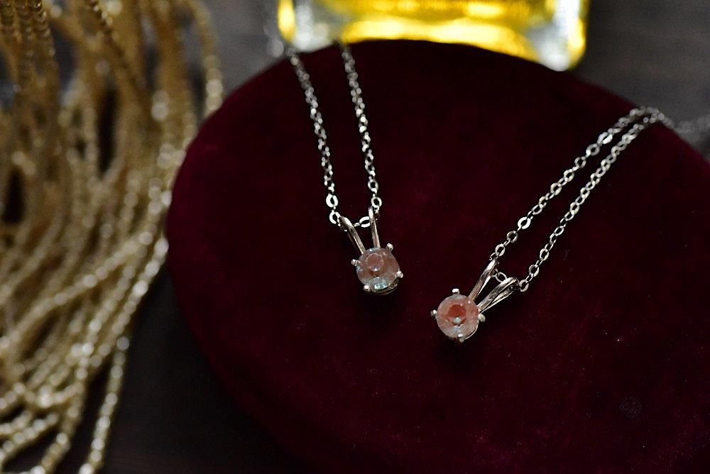 こちらはメッキ加工をしていない無垢のSV925を石座に使用したネックレス。